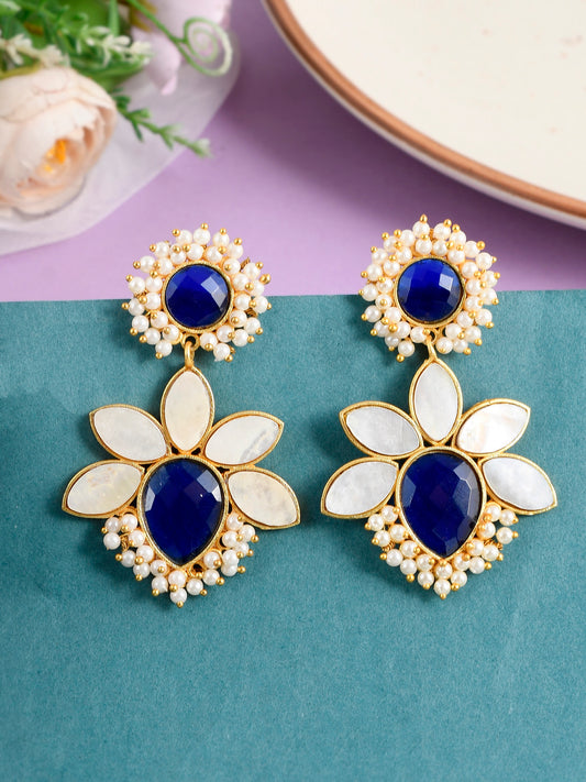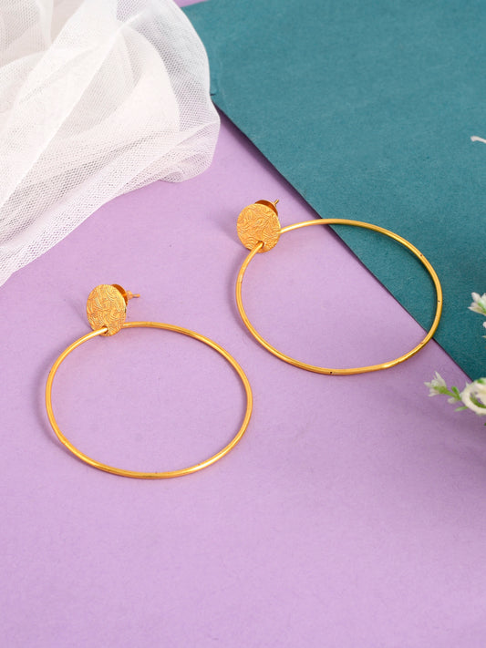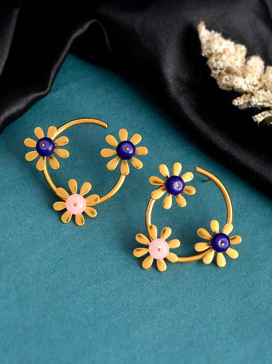 Gold Plated Floral Handcrafted Long Dangle Hoop Earrings