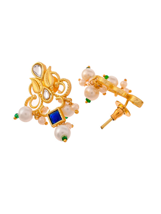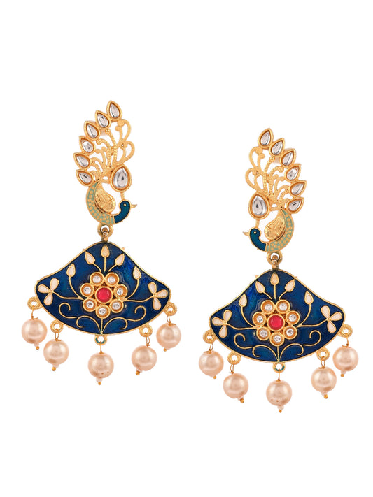 Gold Plated Peacock Kundan Enamalled Drop Earrings for women