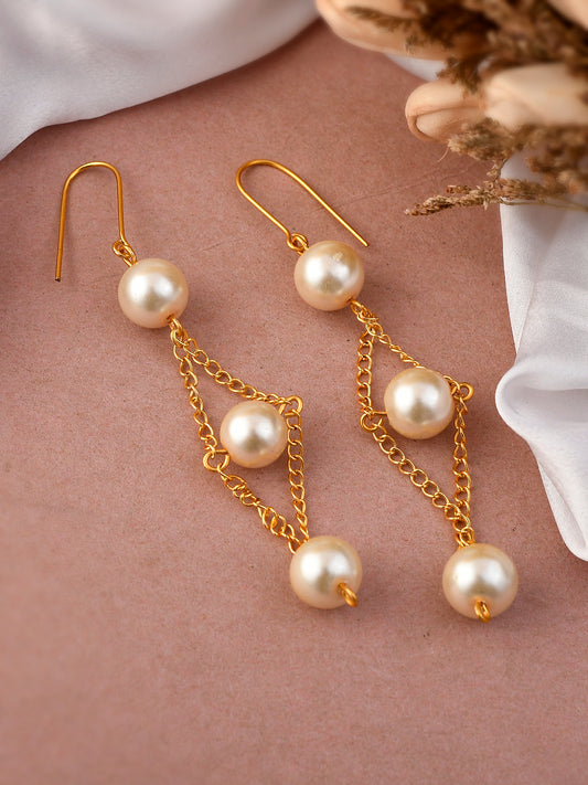 Gold Plated Ethnic Long Handcrafted Cubic Zirconia Dangle Earrings
