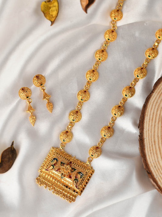 Gold Plated Ethnic Long Temple Jewellery Set For Women