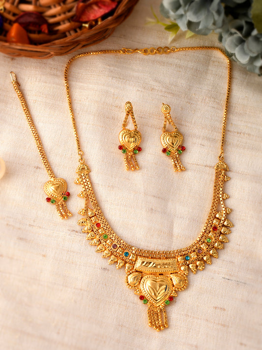 Gold Plated & Gold Toned Temple Jewellery Set For Women