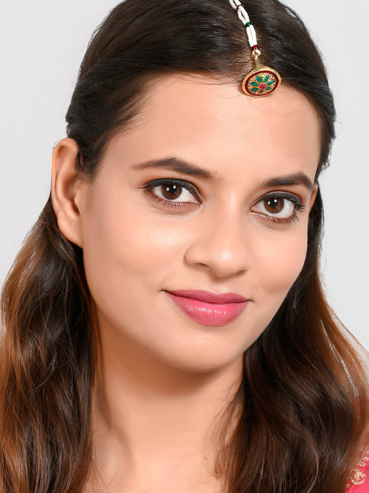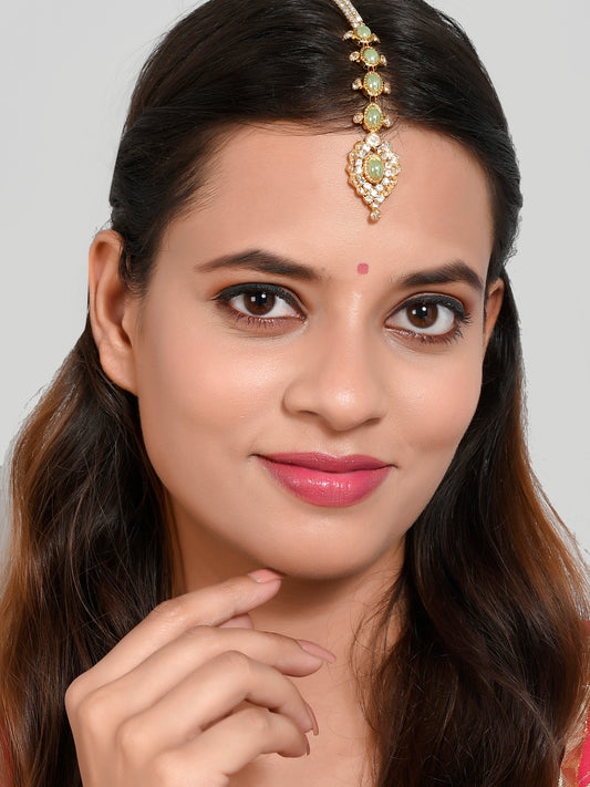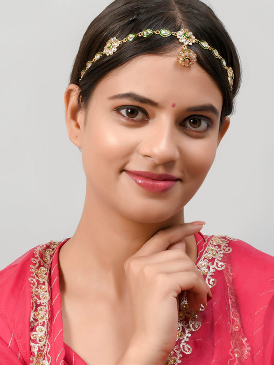 Gold Plated Green Stone Studded Meenakari Borla | Head Jewellery