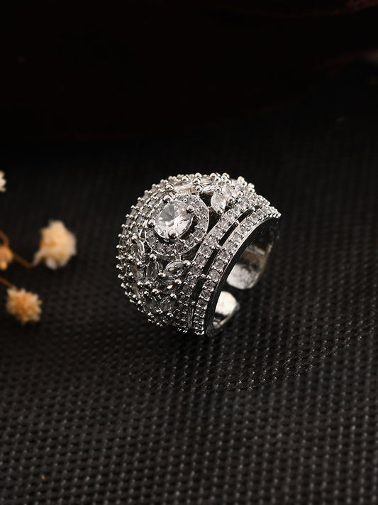 American Diamond Adjustable Statement Ring For Women & Girls