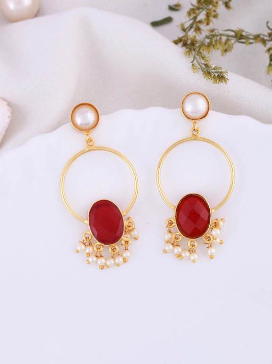 Gold Plated Red Stone Drop Earring For Women