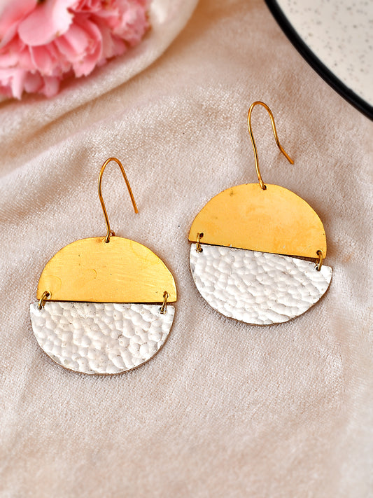 Gold and Textured Silver Half-Moon Earrings For Women