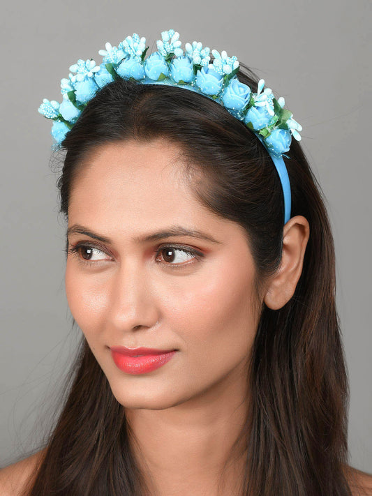 Sky Blue Flower Tiara Hairband With Tic Tac Hairpin
