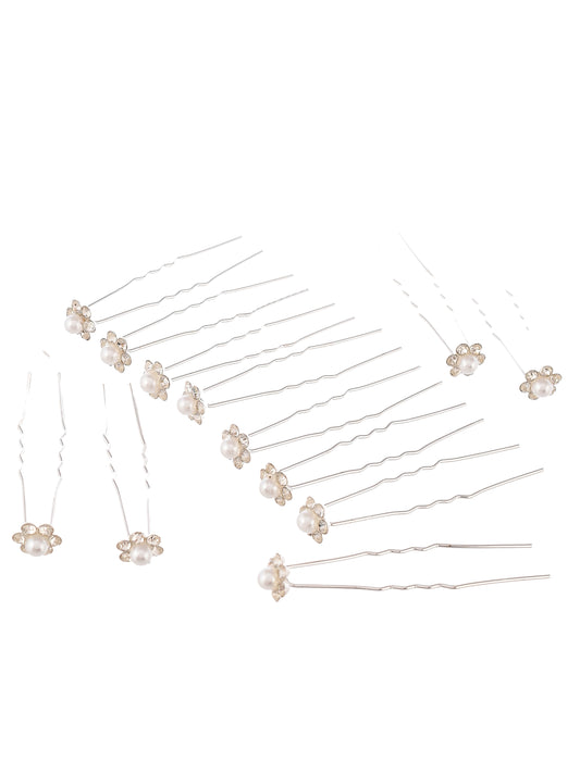 Set of 12 Silver Toned Pearl Beaded U Pins