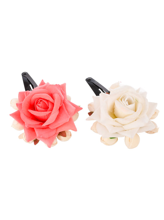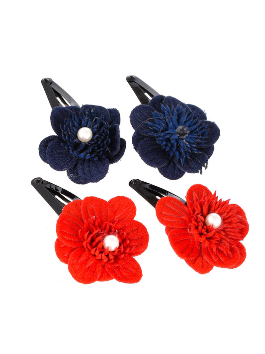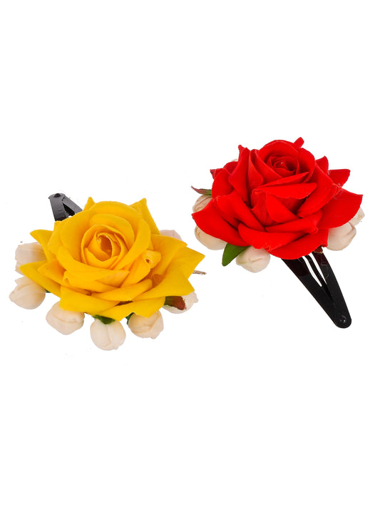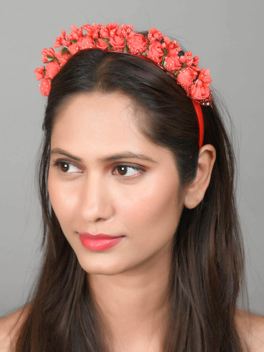 Red Floral Tiara Hairband With Floral Tictac Hair cilps