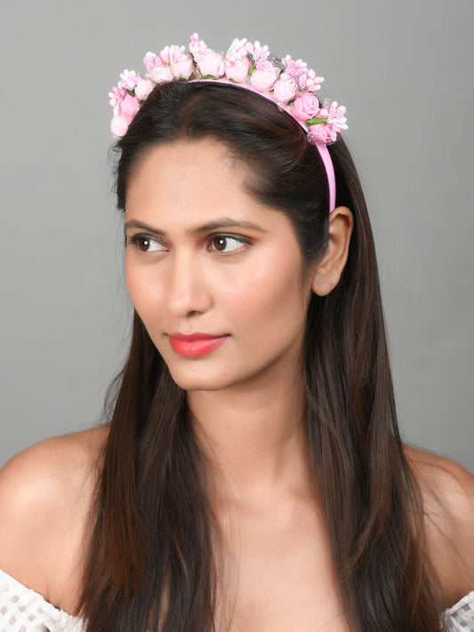 Pink Flower Tiara Hairband With Tic Tac Hairpin