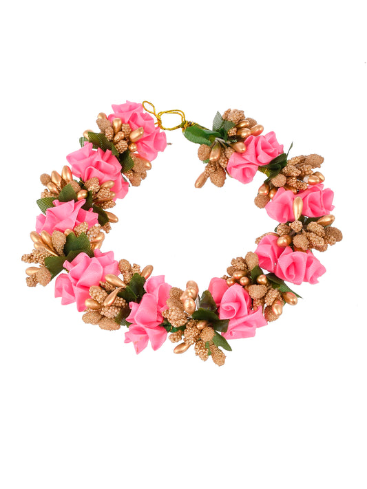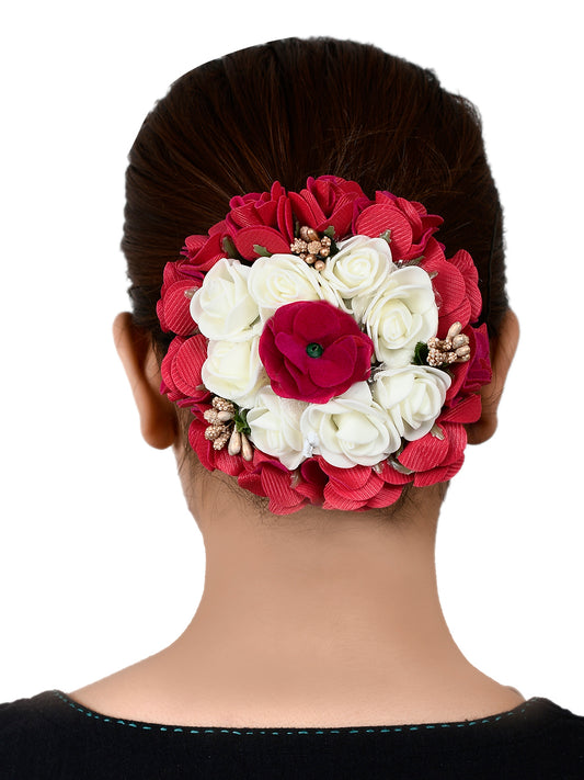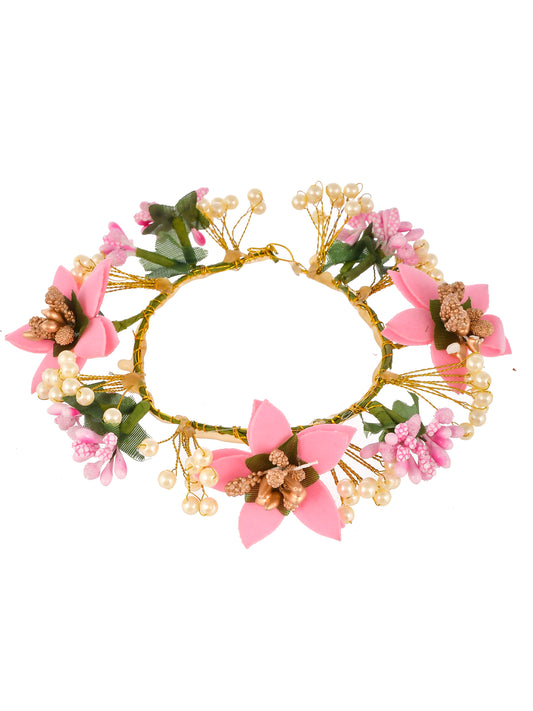 Women Pink & Gold Tone Floral juda beni Hair Accessory set