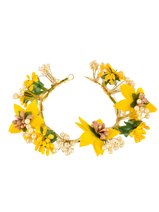 Women Yellow & Gold Toned Embellished juda Hair Accessory set