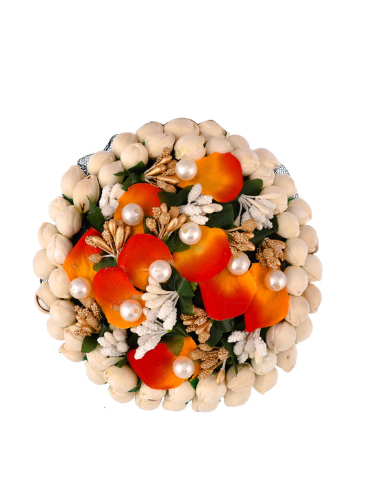 Orange & White Embellished Handcrafted Beaded Hair Bun Cover