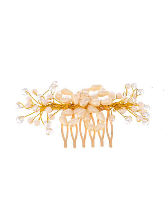 Women Orange & Gold Toned Embellished Hair Comb Pin