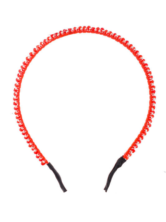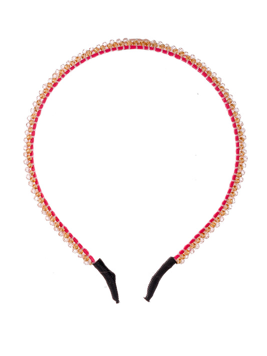 Gold Plated & Red Color Beaded Hair Band With Borla