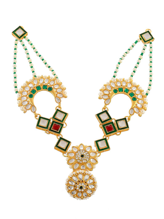Gold Plated Kundan & Pearl Borla For Women | Head Jewellery