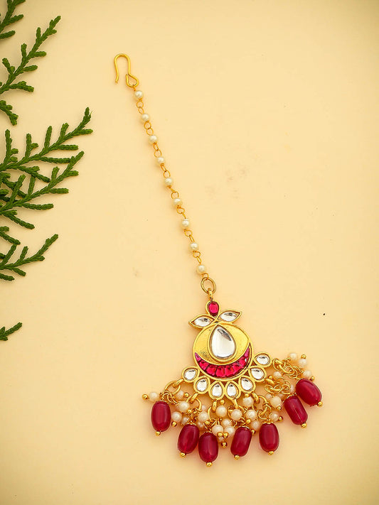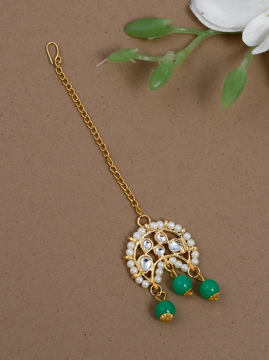 Gold-Plated Kundan & Pearl Beaded Handcrafted Maang Tikka