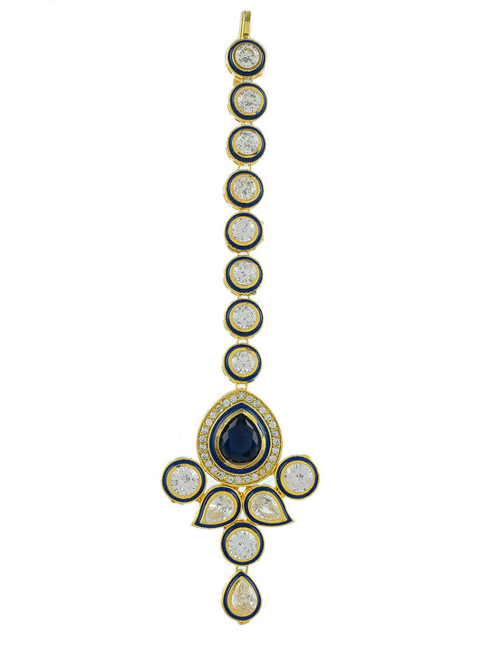 Gold Plated Kundan Ethnic Borla With Mathapatti