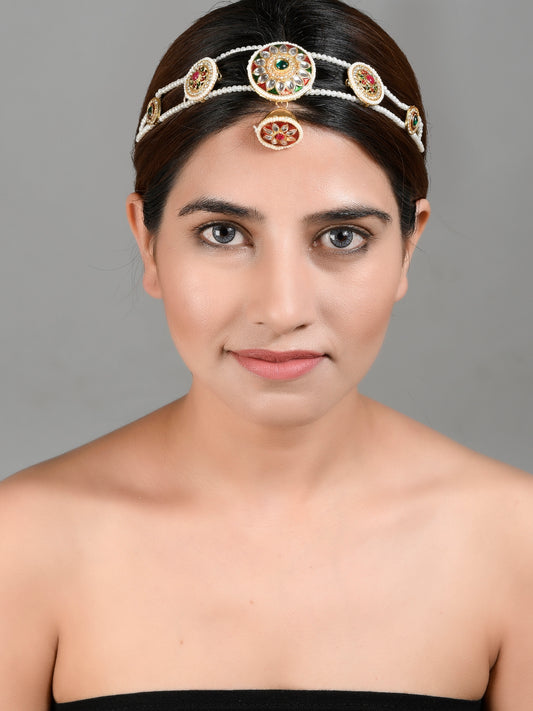 Women Gold-Plated Kundan & Pearl Matha Patti | Head Jewellery