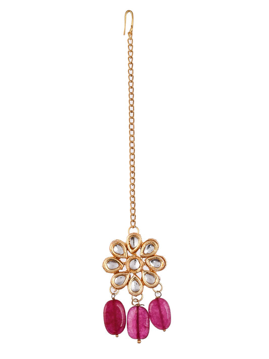 Gold-Plated Kundan-Studded & Beaded Handcrafted Maang Tikka