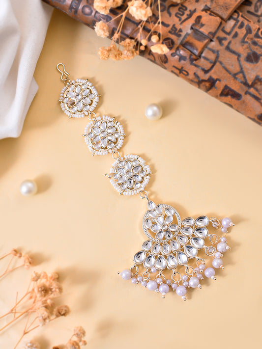 Gold Tone White Stone | Kundan Pearl Handcrafted Matha Patti For Women