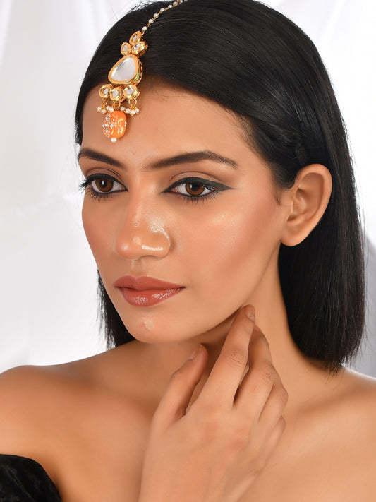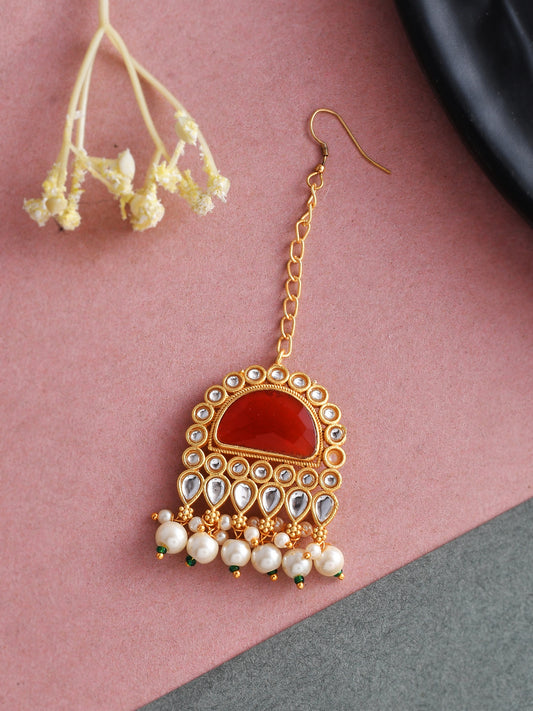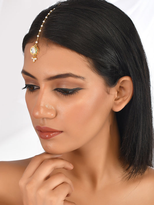 Contemporary Pearl Kundan Gold Plated Maang Tikka For Women