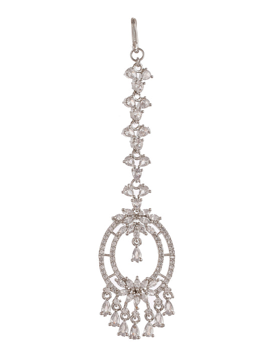 Silver Plated American Diamond Studded Handcrafted Maang Tikka