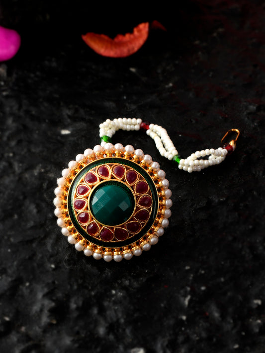 Gold Plated Green Stone Studded Meenakari Borla | Head Jewellery