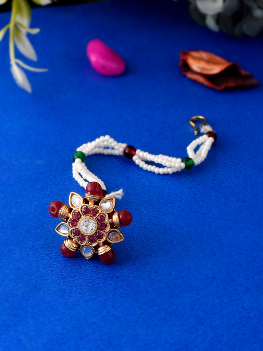 Gold Plated Green & Red Stone Studded Floral Borla | Head Jewellery