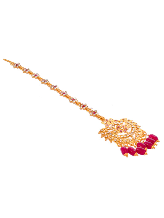 Red Stone Gold Plated Borla | Maang Tikka For Women