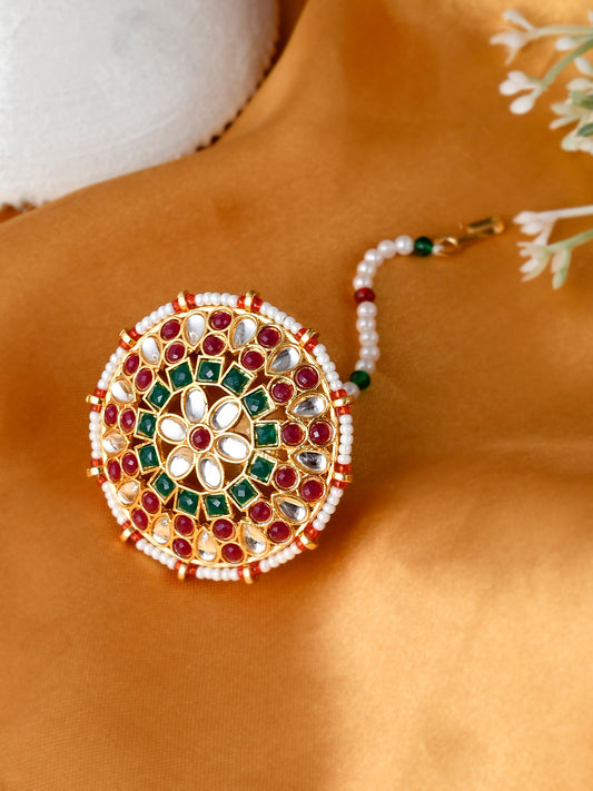Gold Plated Kundan Pearl Rajputi Borla | Head Jewellery