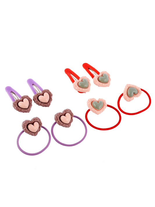 Girls Red Pink 12 Pc Embellished Hair clips Accessory Set