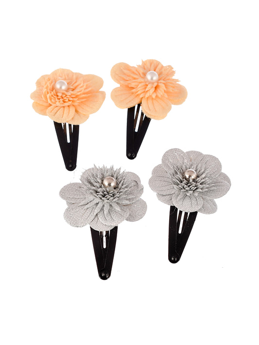 Set of 2 Grey & Orange Floral Tic Tac Hair Clip