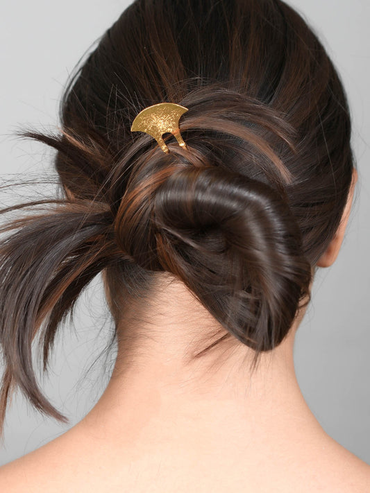 Golden Brass Metal Hair Barrette With Stick For Women