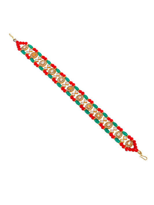 Gold Plated Red & Green Stone & Beaded Matha Patti