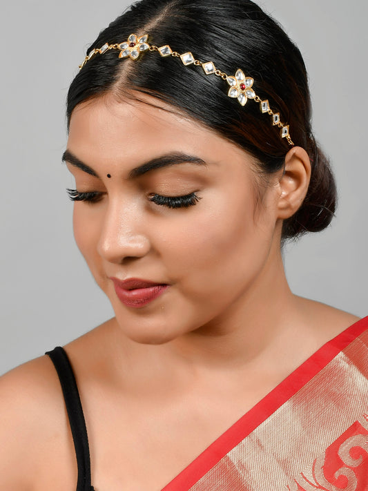 Ethnic Kundan Golden Head Chain | Hairband | Matha Patti For Women