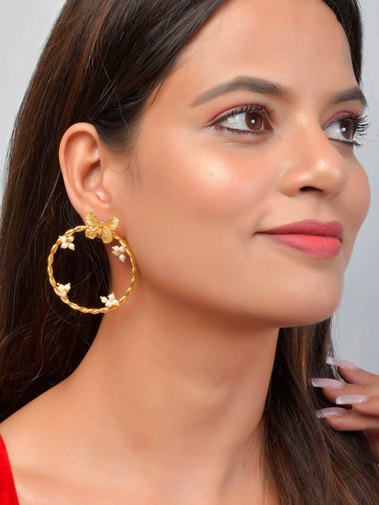 Gold plated Butterfly Round contemporary Pearl Earrings for western outfit