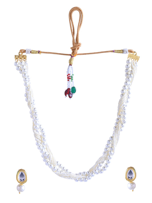 Gold Tone Pearls Jewellery Set With Earrings For Women