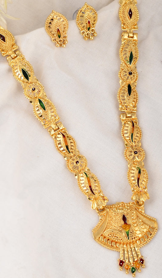 Gold Plated Traditional Meenakari Temple Jewellery Set For Women