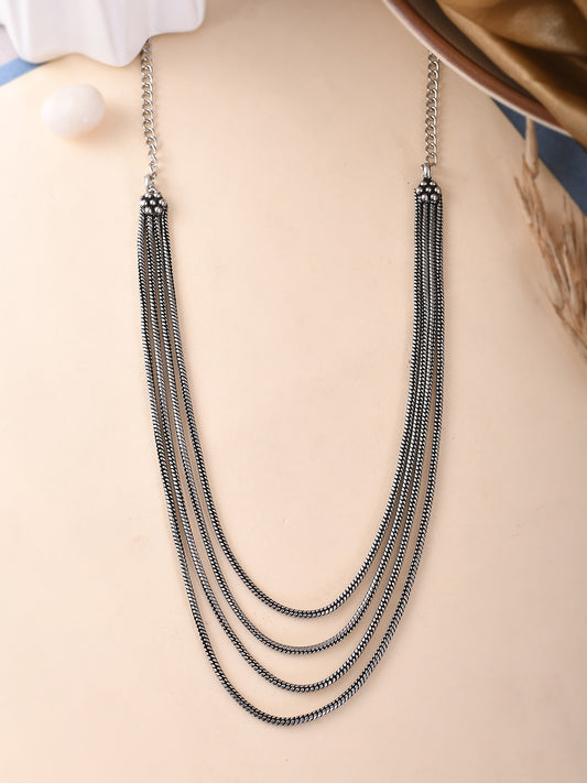 Multi-Strand Silver Necklace | Ethnic Set For Women