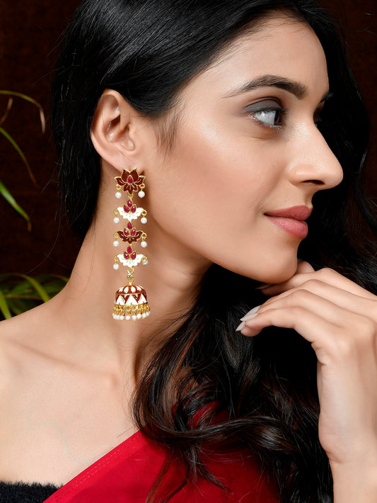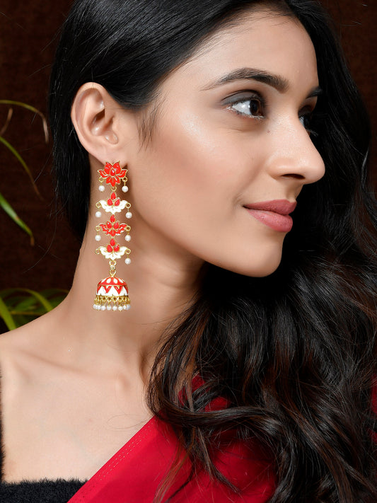 Gold Plated Red meenakari Handcrafted Jhumkas