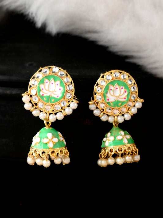 Kundan Meenakari Handcrafted Floral jhumka Earrings