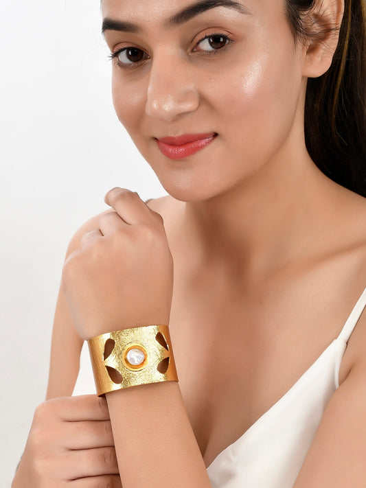 Gold Cuff Bracelet with Sleek Openwork Design | Bracelet Kada For Women