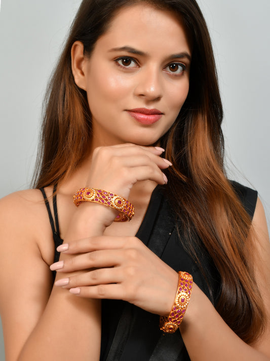 Gold-Plated Ruby Red Stone Bangles For Women | Party & Wedding Wear Jewellery | Traditional Ethnic Kada Design