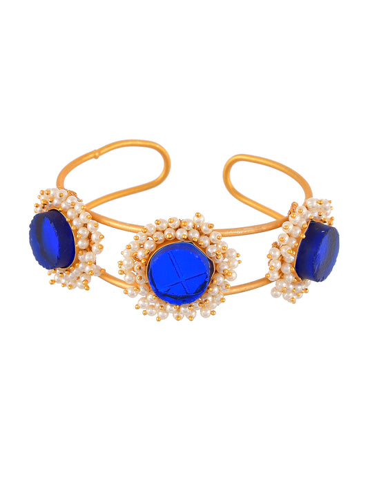 Blue Stone Kada Pearl Gold Plated Bracelet