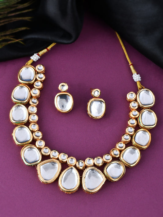 Gold Plated Red & White Kundan Stone Studded Choker Jewellery Set