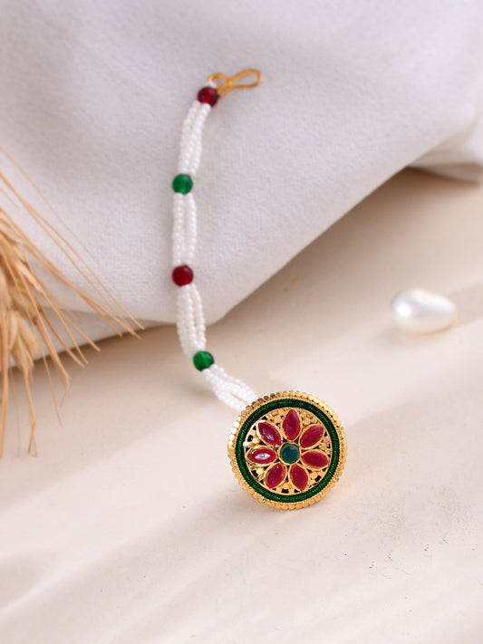 Kundan Pearl Gold Plated Matha Tikka For Women