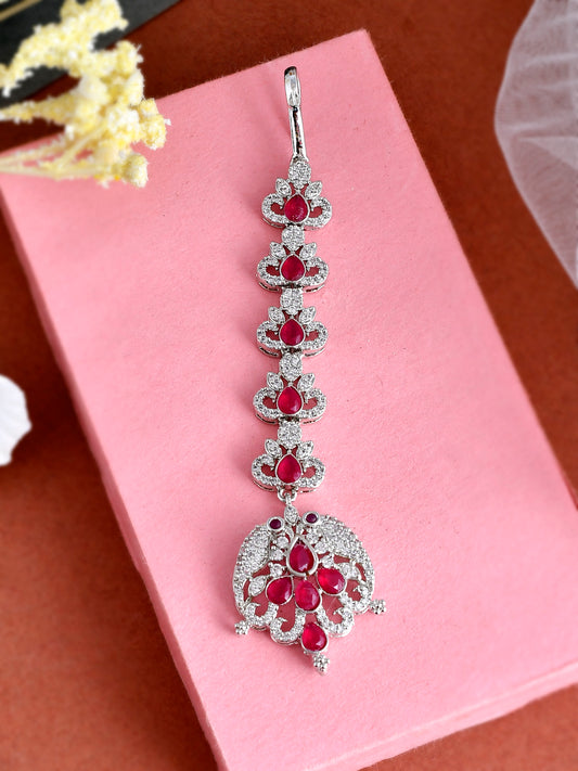 American Diamond Ruby Red Maang Tikka For Women