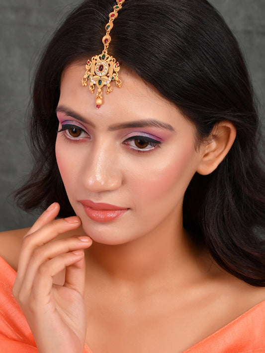 South Indian Multi Stone Maang Tikka | Traditional Wear For Women