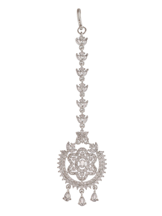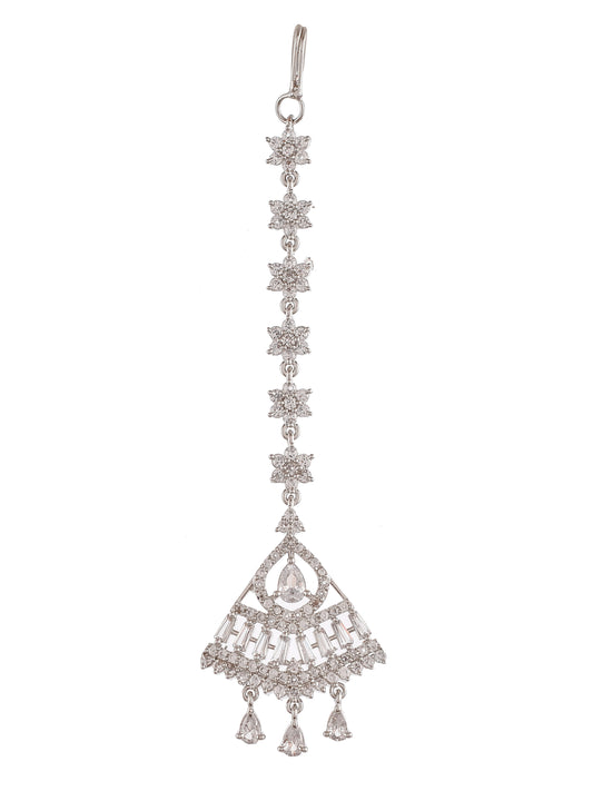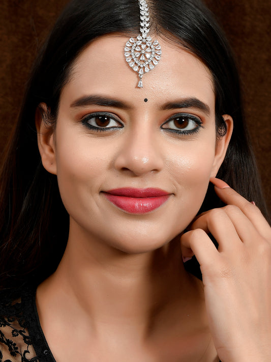 Silver American Diamond Maang Tikka For Women