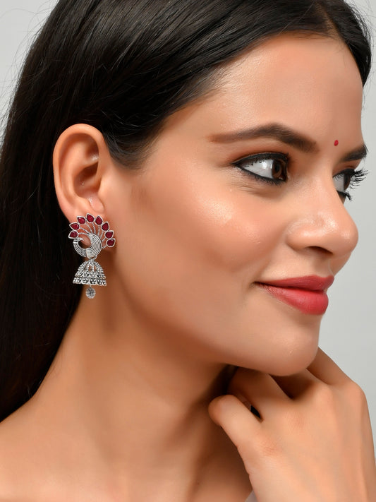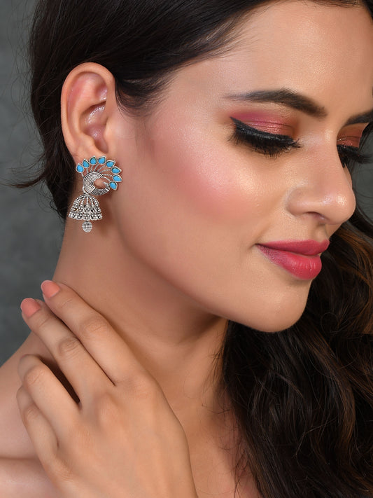 Silver Toned Oxidised Peacock Jhumka Earrings